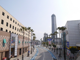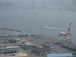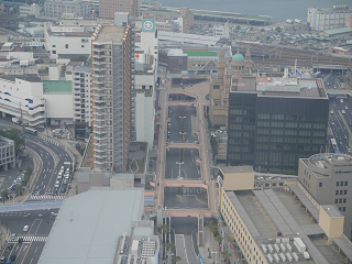 11:04タワーへ向けてペデストリアンデッキをズンズンと歩きます。 途中、右手に下関港も見えました。 |