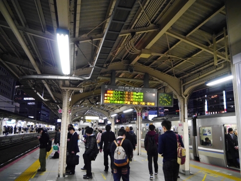 18:52おかげで岡山の時点で夕方の通勤ラッシュと鉢合わせ。 座って姫路まで動きたいので、ホームで20分粘ります。着席大事。 |