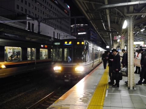 21:21姫路まで直角クロスを乗り通し、そこから8両の新快速に乗り換えて、やってきたのは神戸三ノ宮。 新快速は安定の130km/hで、車内アナウンスまったく聞こえませんでした。 |