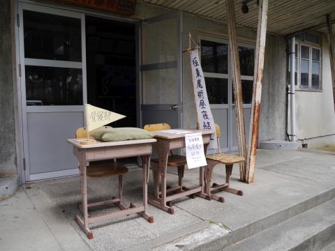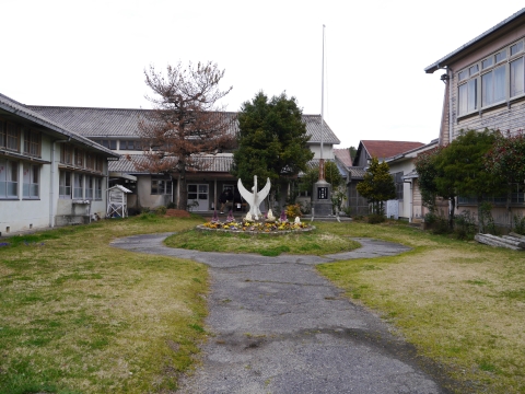 12:33バス停から歩いて間もなく、舞台に到着。 旧・鎌掛小学校。 愛称として「しゃくなげ學校」と名付けられています。 |