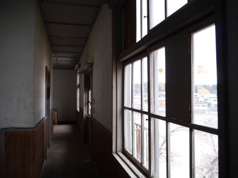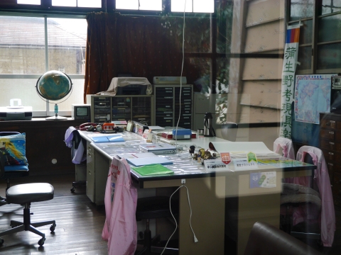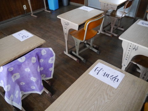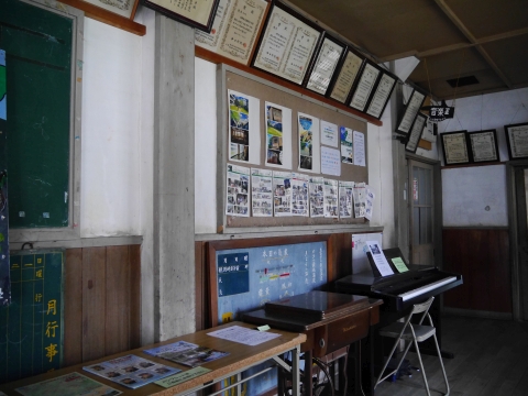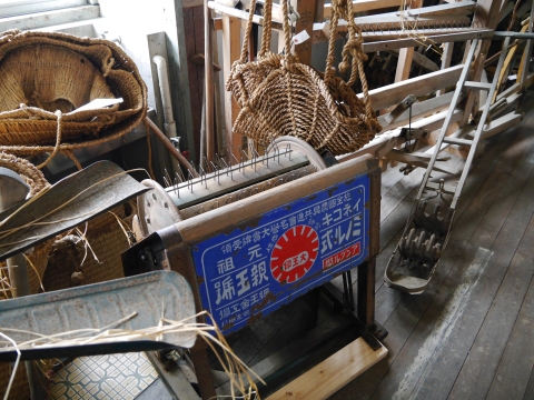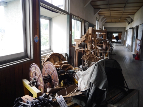 12:45教室の廊下には、昔使われていた農具が雑多に置かれていました。 |