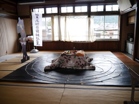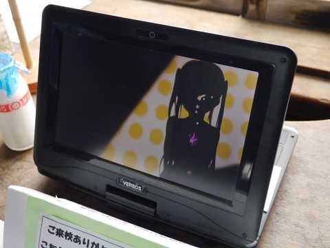 12:56脱靴場付近では、本編がささやかに放映されていました。 脇にはさりげなく凸守の苦手なアレが。 |