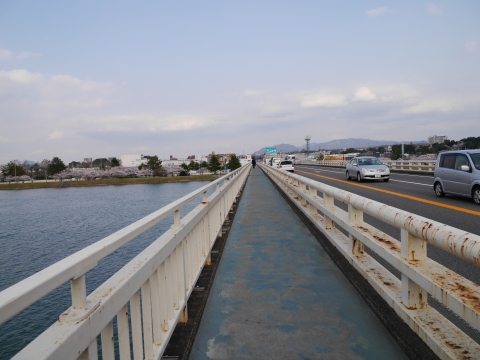 15:40勇太と六花が何度も渡った瀬田川大橋。国道1号線の橋です。まあまあ傷んでます。 |