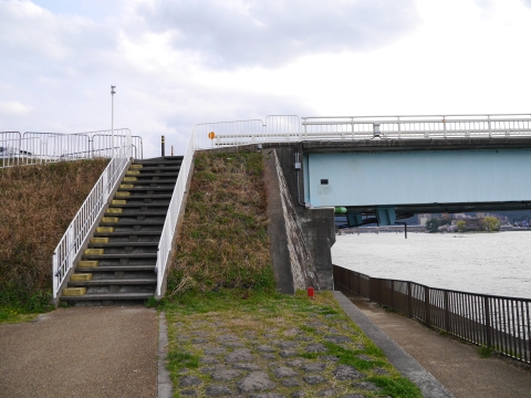 15:45瀬田川大橋の東端に到着。 ちょうど2期を終えたばかりの中二病ファンにとって、ここは今いちばんアツい場所! |