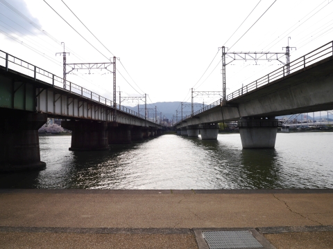 15:53そして、おそらく本作品で一番有名であろう聖地がこの場所。 このシンメトリーな景色は、OPの独特な演出で存分に活かされました。 2つの橋の正体は、どちらも東海道本線(琵琶湖線)。もともとは1つでしたが、複々線化に伴い新規に橋梁が造られました。そのためか、左右でそれぞれ構造が異なっているのも見てとれます。 |