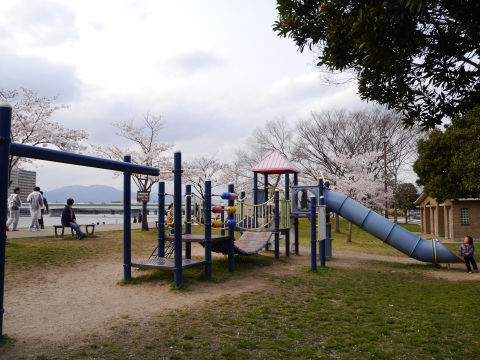 16:10唐橋公園。 遊具があり、憩いの場として賑わっていました。 そして、十花さんとの戦闘の場にもなりましたね…。 |
