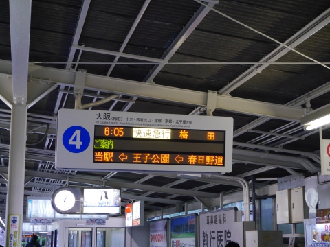 06:03六甲駅は、日中は普通列車しか停車しませんが、早朝と深夜に数本だけ快速急行が停車します。 日中の場合、岡本で普通から快速急行に乗り換えが必要らしい。 |