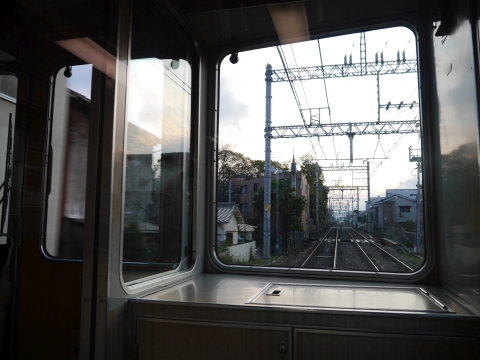 06:11新快速の130km/h展望は爽快感がありますが、住宅街を高速ですり抜けるこの景色も迫力があります。爽快感というよりは、スリルに近い。 標準軌の多い関西私鉄ならでは。 |