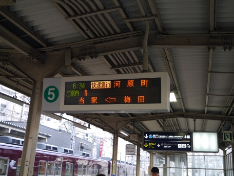 06:29十三に到着。ここで梅田から来る河原町行きに乗り換えます。 |