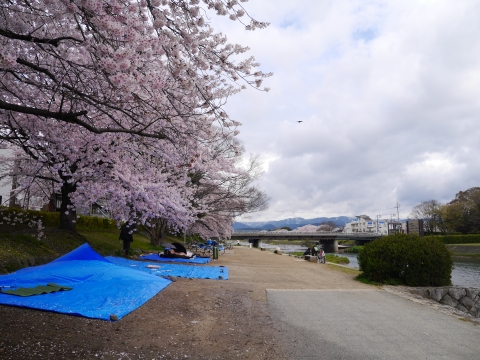 08:41鴨川沿いはお花見スポットとしても人気のようです イイ位置は早くも押さえられてますね。 |