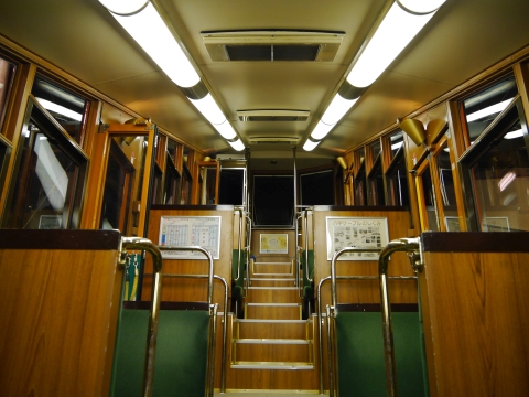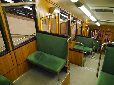六甲ケーブルは2両編成です。 行きは窓有りの車両に乗りましたが、帰りは窓無しの開放的な車両に乗ります。 |