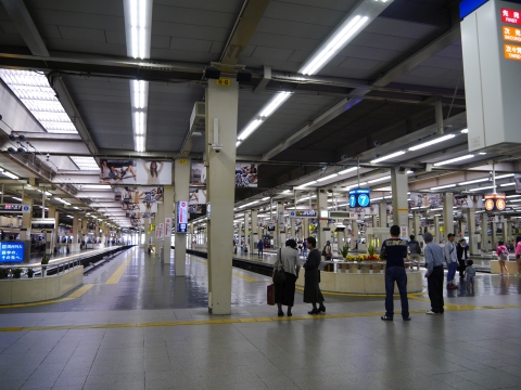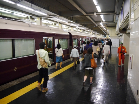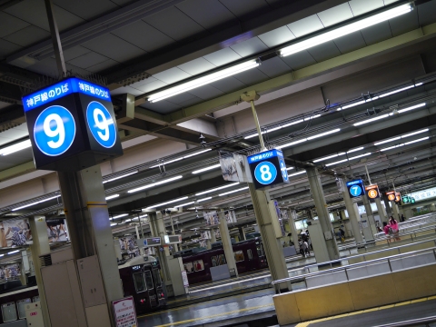 阪急梅田駅に到着。 ターミナル感あふれる頭端式ホームです。 これぞ大手私鉄!といった光景。 |