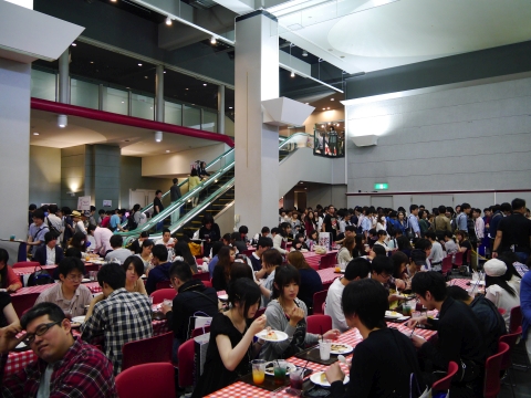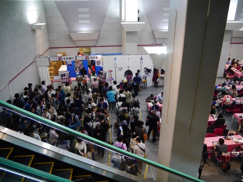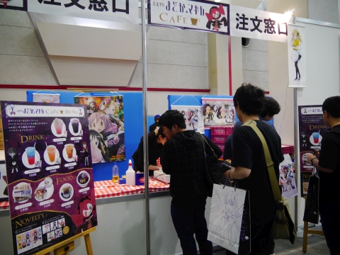 お次はフードコーナーでコラボメニューをいただきます。 注文するだけでも一苦労。この人だかり。 しかし、京まふでは2時間、ACEでは3時間半もの間まどマギのために並んだ自分にとっては、このくらいまだまだです! |