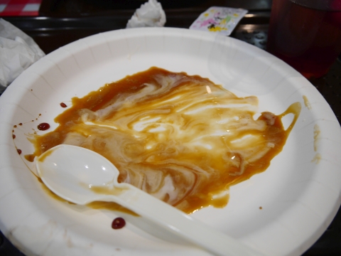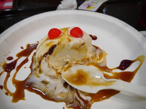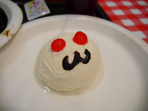 キュゥべえアイスもなかなかの破壊力。 アイスには黒蜜がセットで付いてきました。かけてみましょう。 |